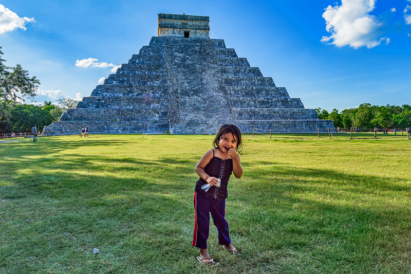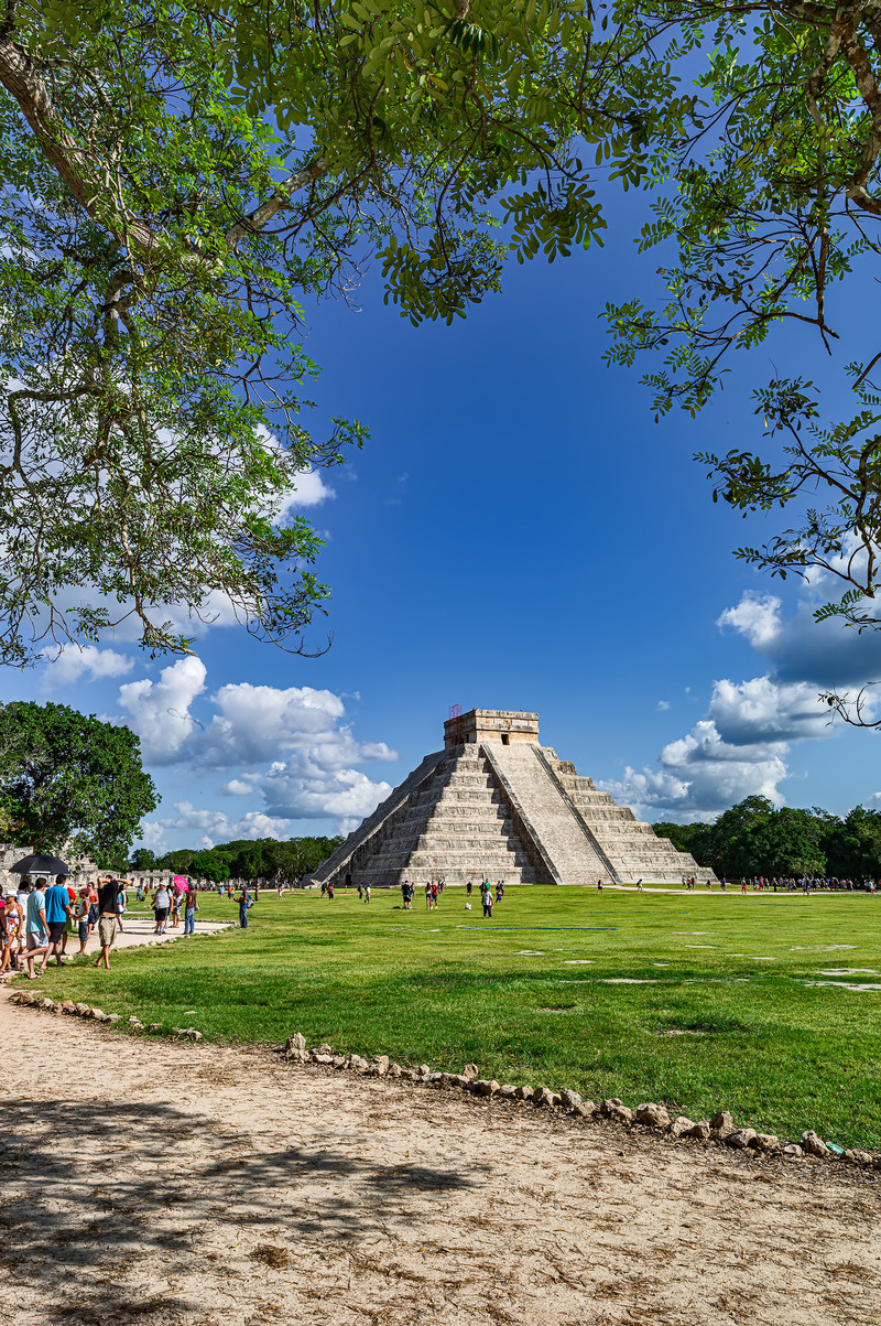 奇琴伊察最令人瞩目的就是这雄居城中最高大的建筑,库库尔坎金字塔(Temple of Kukulkan),Kukulkan是玛雅宗教中的羽毛蛇神,所以也叫“羽蛇神金字塔”,古玛雅最壮观的金字塔。
