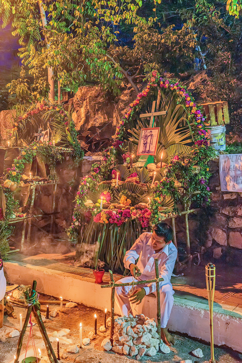 离亡灵节还有不到一个星期,这些天短暂停留的小城镇,大大小小的祭祀活动已经开始了。这是城里的地标性建筑,一座500多年西班牙人建立的教堂,今天晚上就有祭祀活动,人们已经开始做活动前的准备了。