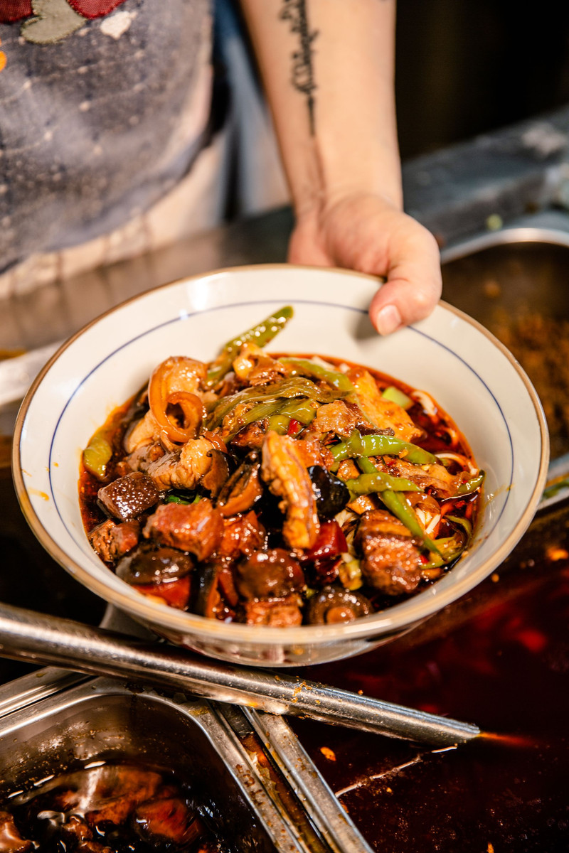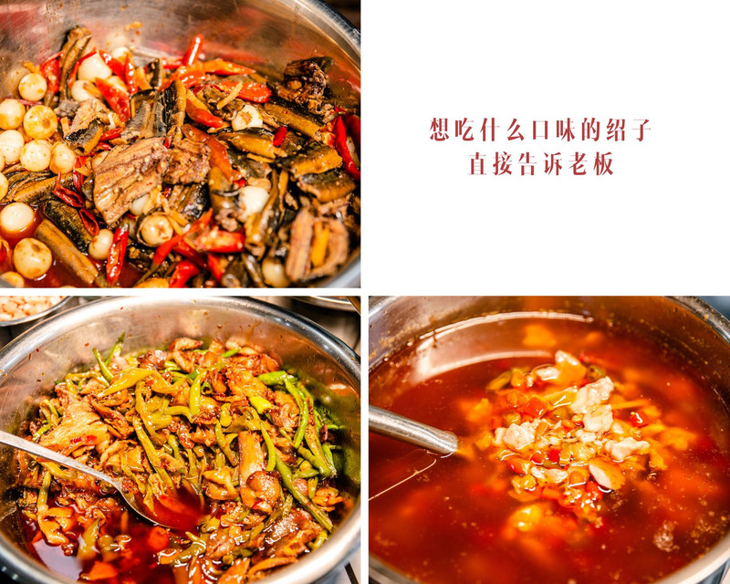再根据每个食客的点单,放上自己炒制的绍子即可