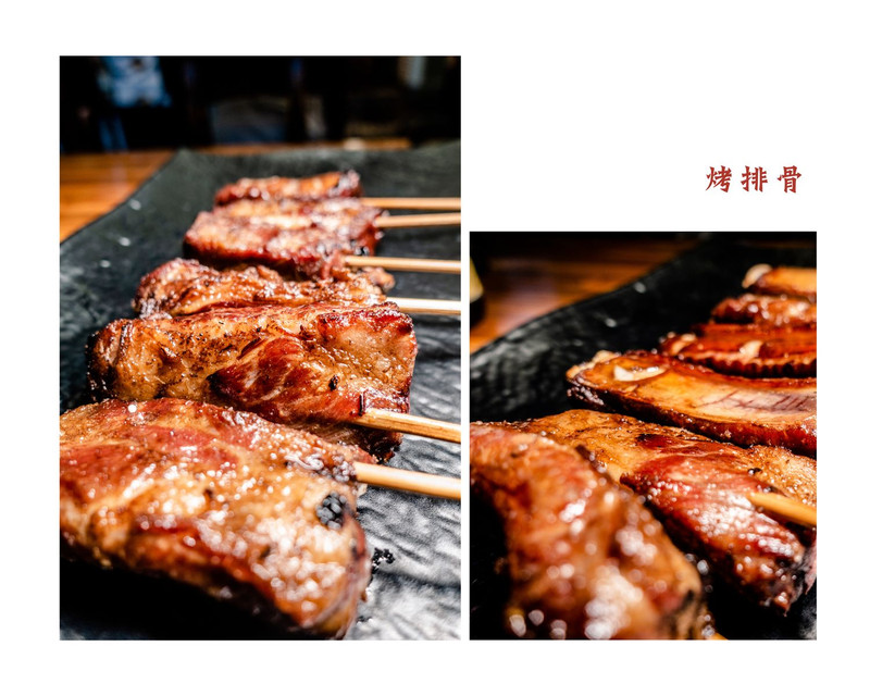 这是我每次来大爷家必点的烤排骨。淡淡的烟熏腊肉排骨和烧烤香碰撞,撞出了一口就上瘾的烤排骨。一口咬下去,腊排骨的味道和烧烤调料的味道即融合又分离;