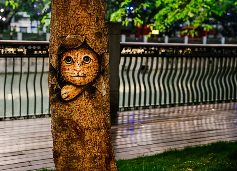这里保留了成都市井的一面,不同小团体的广场舞大妈们在这里翩翩起舞;喜欢书法的大爷们,则在这里挥毫泼墨。