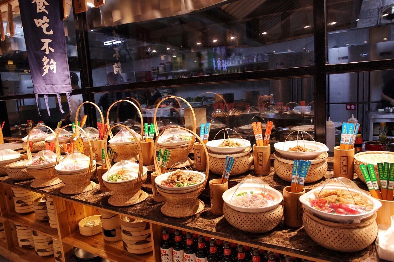 进门便是温馨的自助抽签点餐区 干净明快,不仅可以看到各式菜品 还能看厨师们现场烹饪