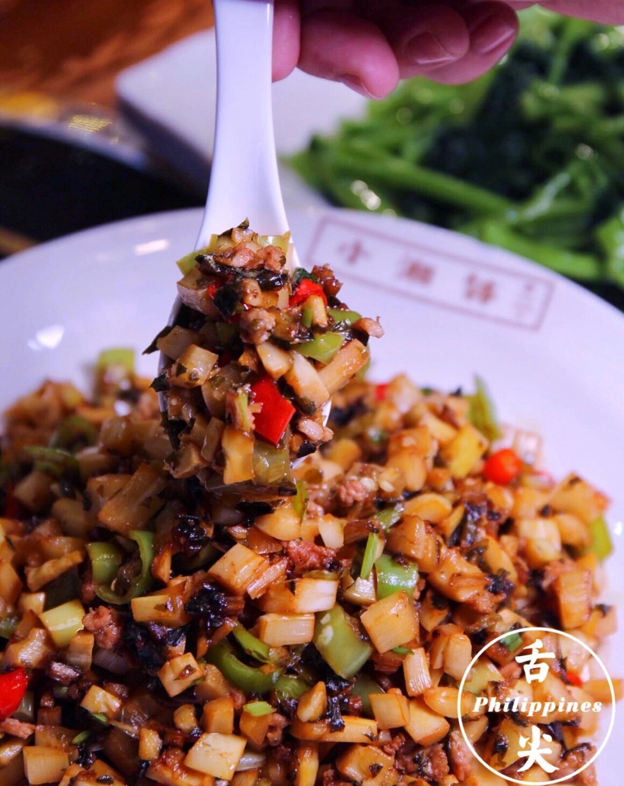 ☉ 酸菜炒小笋 同样家常范儿满满的一道菜 酸菜+切丁的嫩笋+辣椒,食材简单新鲜