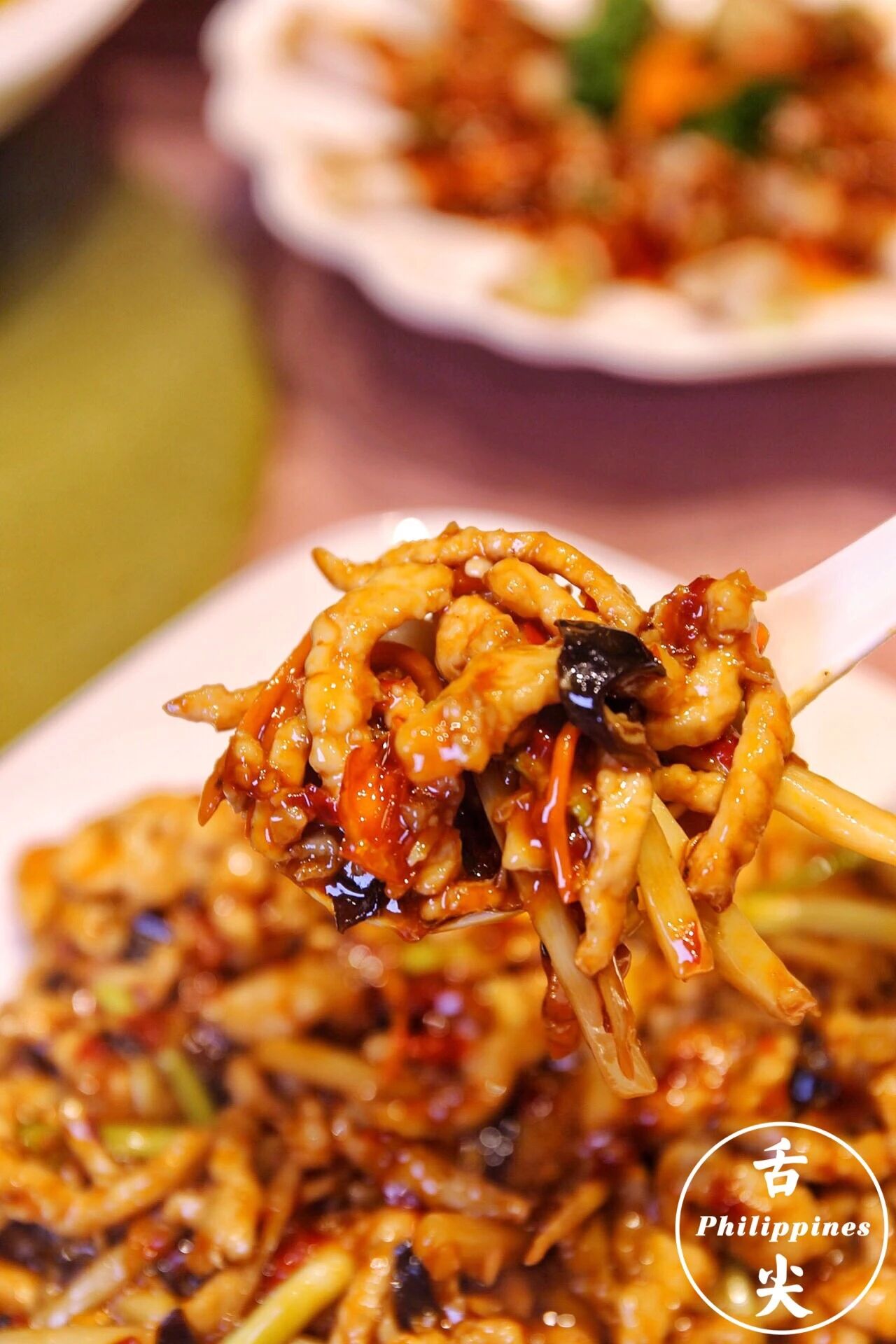 佐以鲜笋、葱白、木耳、胡萝卜丝勾芡烹制