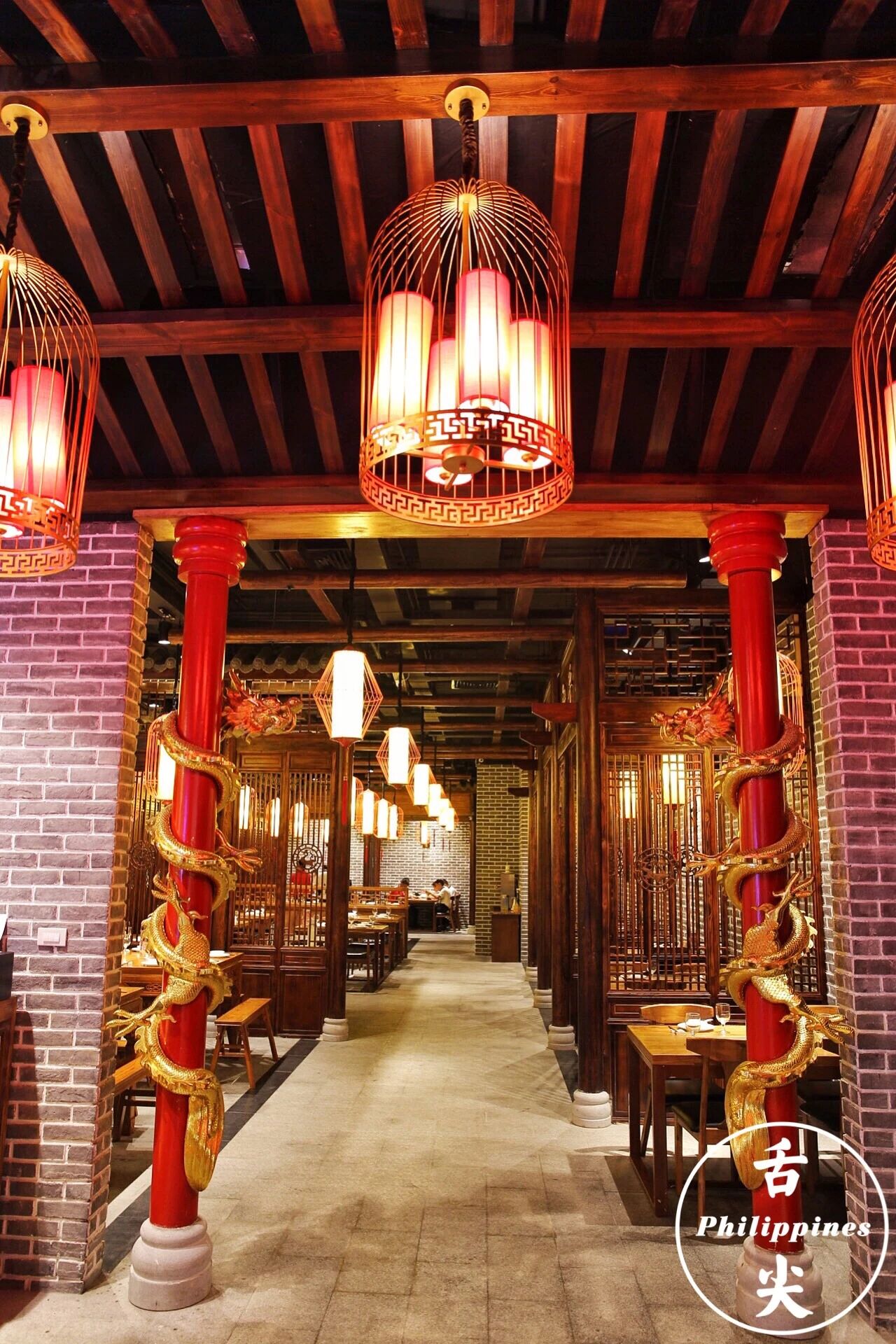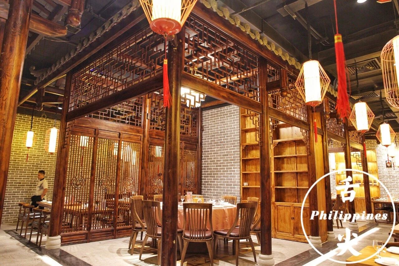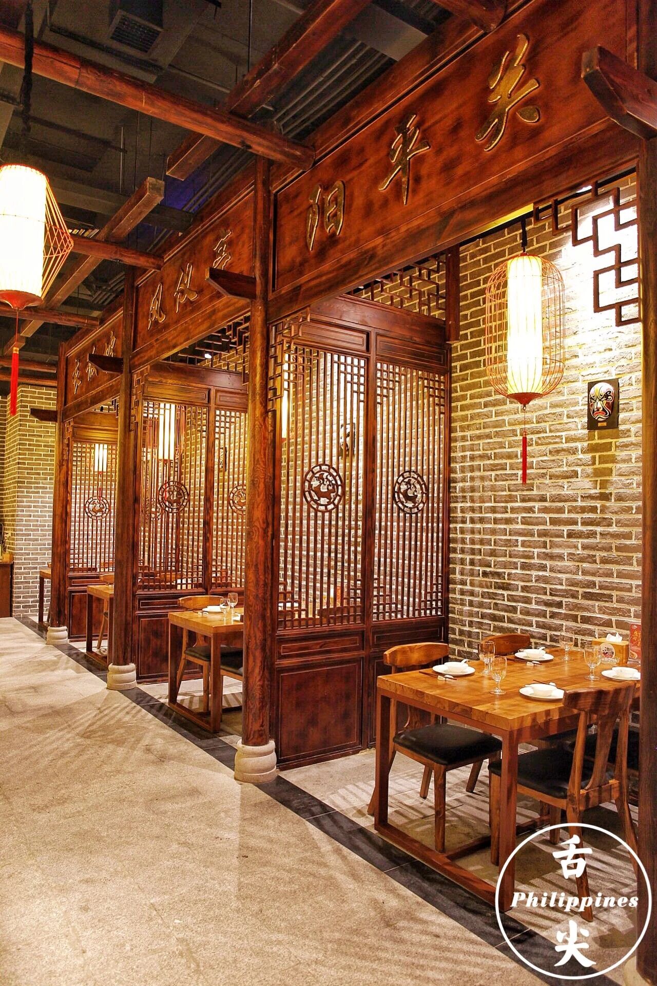 暖黄的的灯光、木质桌椅和隔断、复古青砖