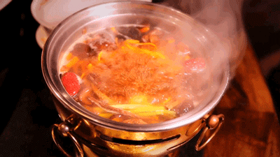 除了高端大气的环境 连餐具都是相当讲究的 金灿灿的一人一锅小火锅 自己想吃啥涮啥,干净又卫生