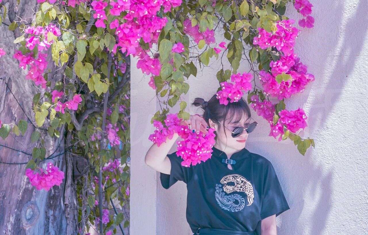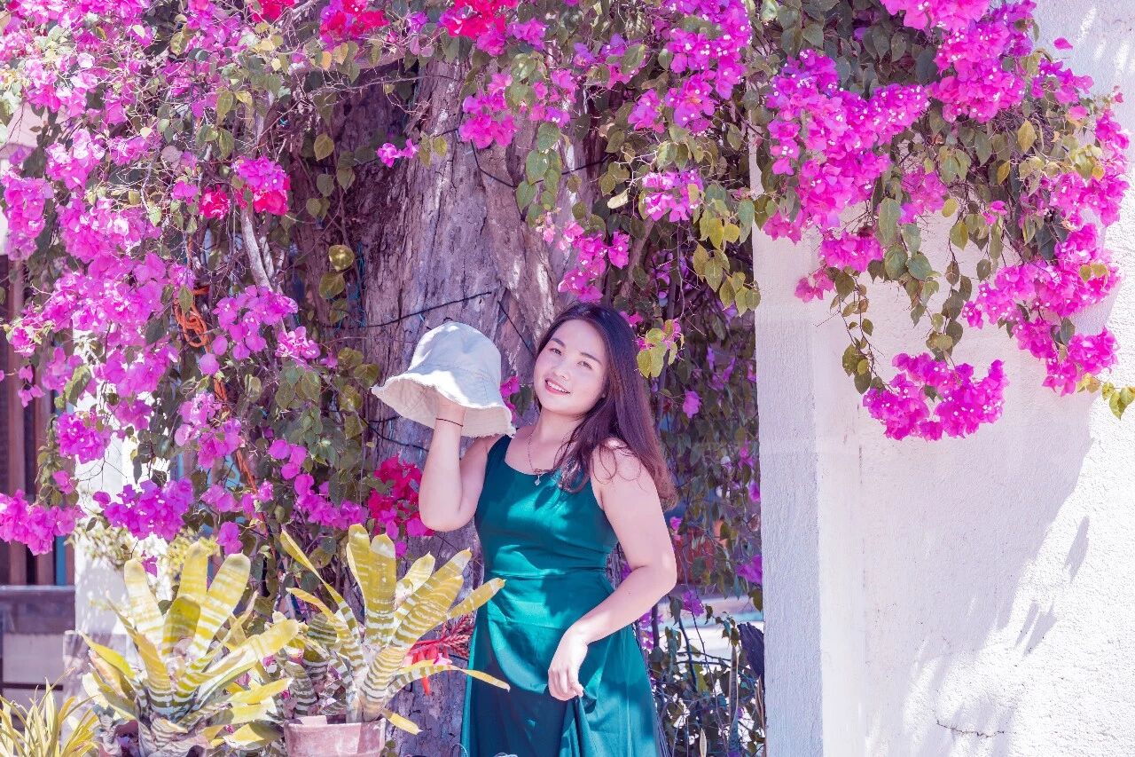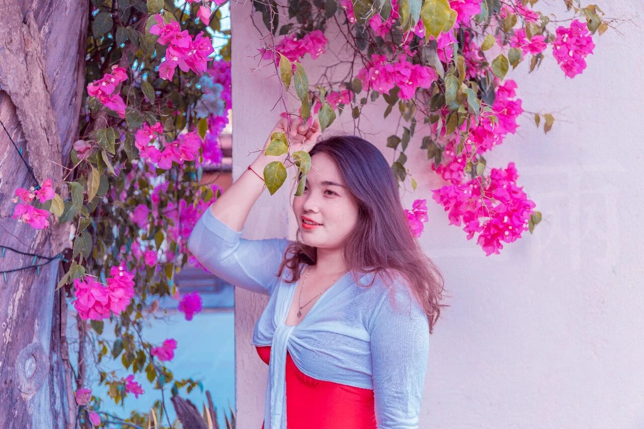 大中午的,顶着烈日在海边疯狂拍了几张实在顶不住了,赶紧转移阵地发现有一面墙,三角梅开得正艳绝对是的摆拍好地方