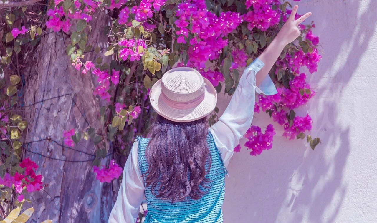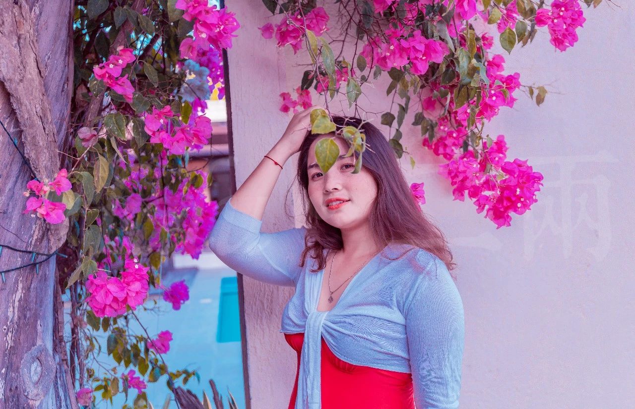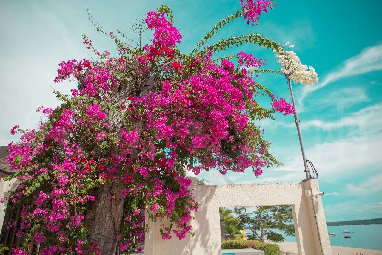 大中午的,顶着烈日在海边疯狂拍了几张实在顶不住了,赶紧转移阵地发现有一面墙,三角梅开得正艳绝对是的摆拍好地方