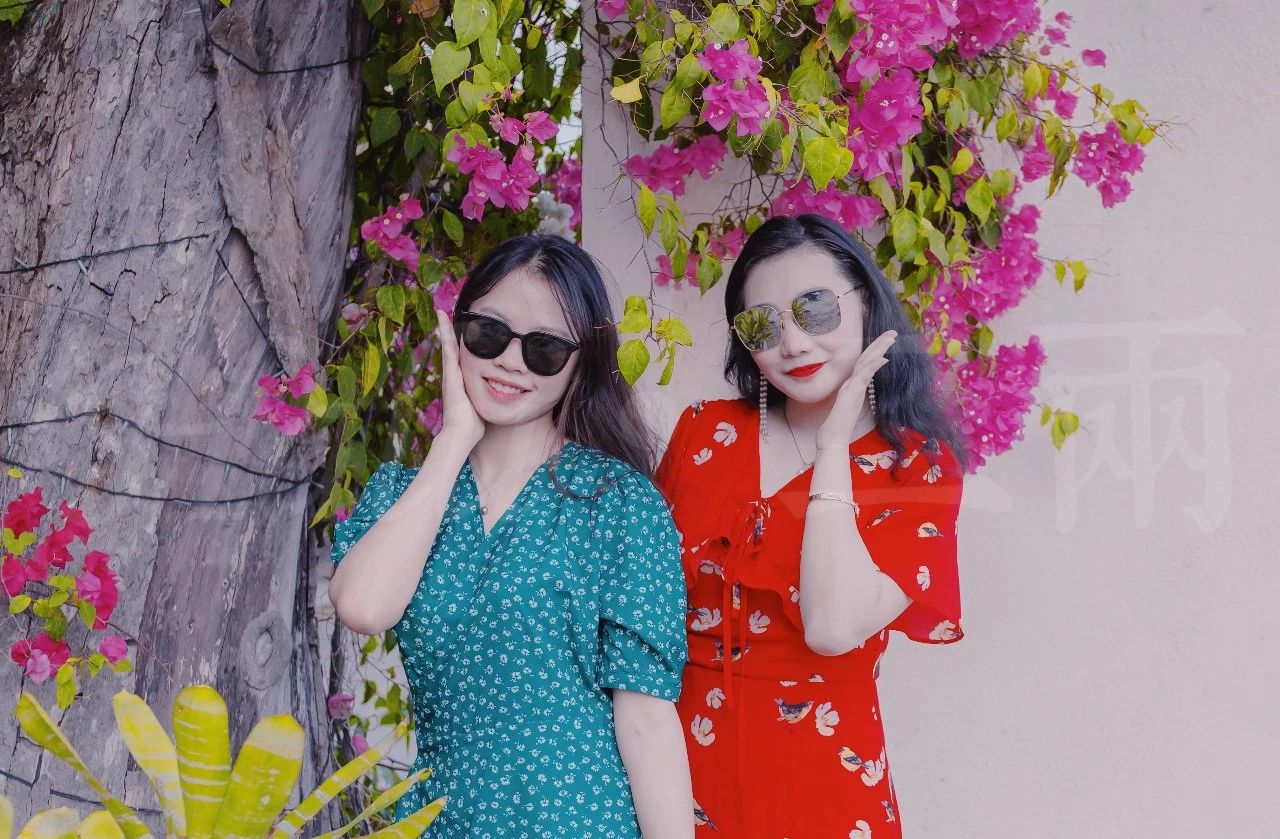 一群女生又开启了拍拍拍模式首先是白到发光的红绿姐妹花