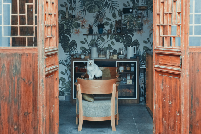 这边我看到有很多的灯带,看来晚上也是会亮灯的,我们决定等晚上亮灯了再回来看看。顺着湖边的栈道一路往古镇里面走,很多都是当地的民居改成了民宿,偶尔还是能看到几间没有成为民宿的民居。