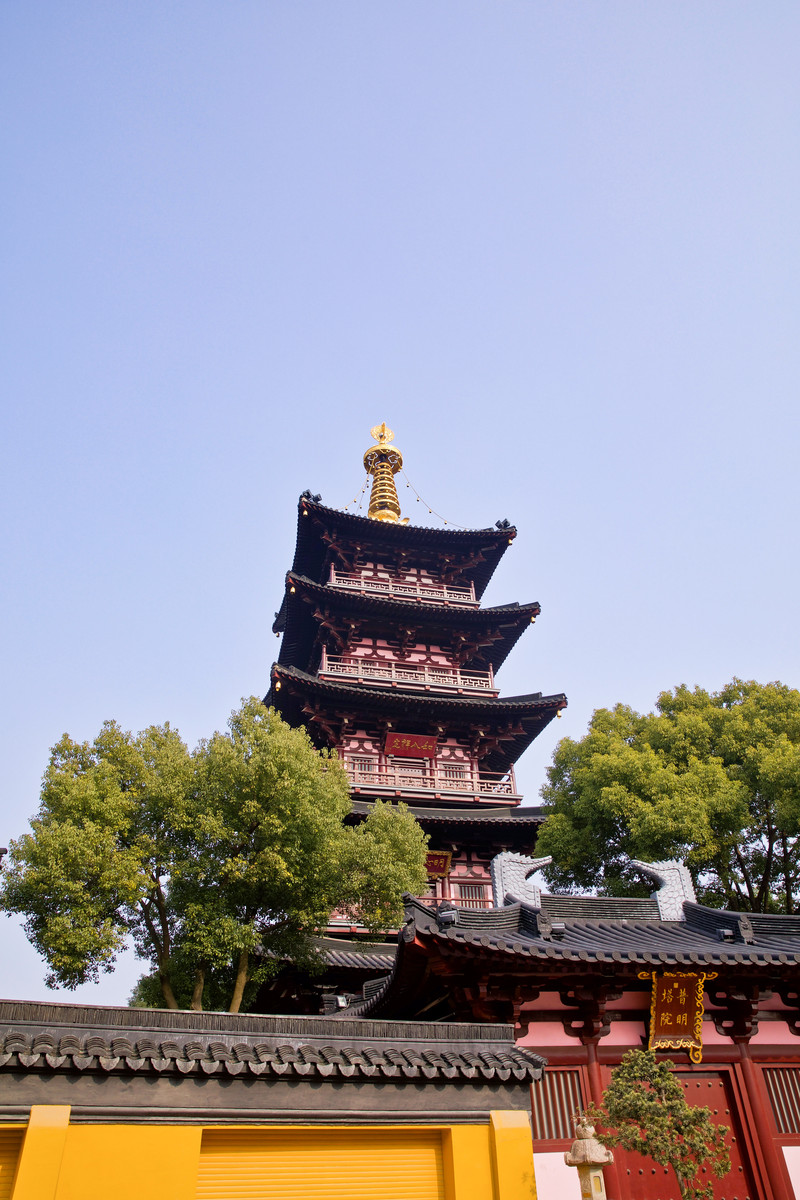 寒山寺里也是其他寺庙差不多,也有大雄宝殿、藏经楼、钟楼这些 ,还有一座“普明宝塔”,不过最让它出名的地方还是碑廊,碑廊里有好多块刻满《枫桥夜泊》 的碑石。