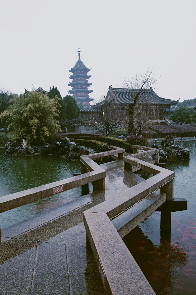 细雨中的园林更多出一些文雅,漫步在冬日细雨中的小路上,欣赏这山水萦绕,厅榭精美,充满诗情画意,具有浓郁的江南水乡特色的苏式园林。
