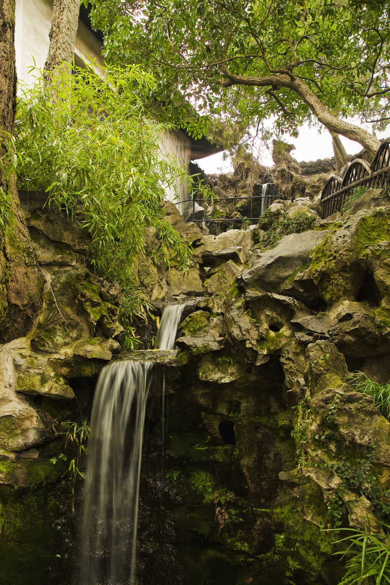狮子林的假山,据说都是太湖里面的石头堆砌的,可见这工程的浩大。雨水渐渐变大,拿着这一身的设备实在不敢再爬滑溜溜的石头山了,不穿行假山的话可以顺着外围的长廊走就好了。