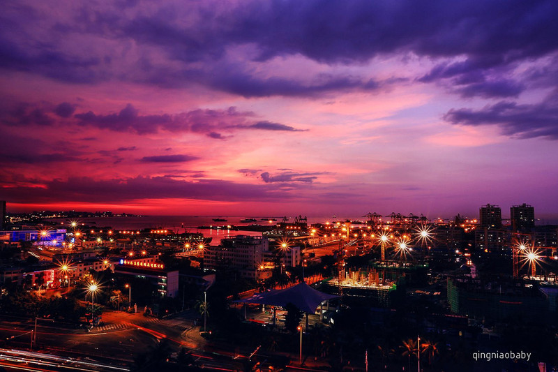 走过万绿园之后在进入西海岸之前会看到海口港,海口人习惯叫它秀英码头。夏天的傍晚静静的看码头特别美,西海岸头顶的彩霞漫天,旖旎梦幻,尤其是夏季的短暂暴雨之后,美的让人不忍心眨眼。